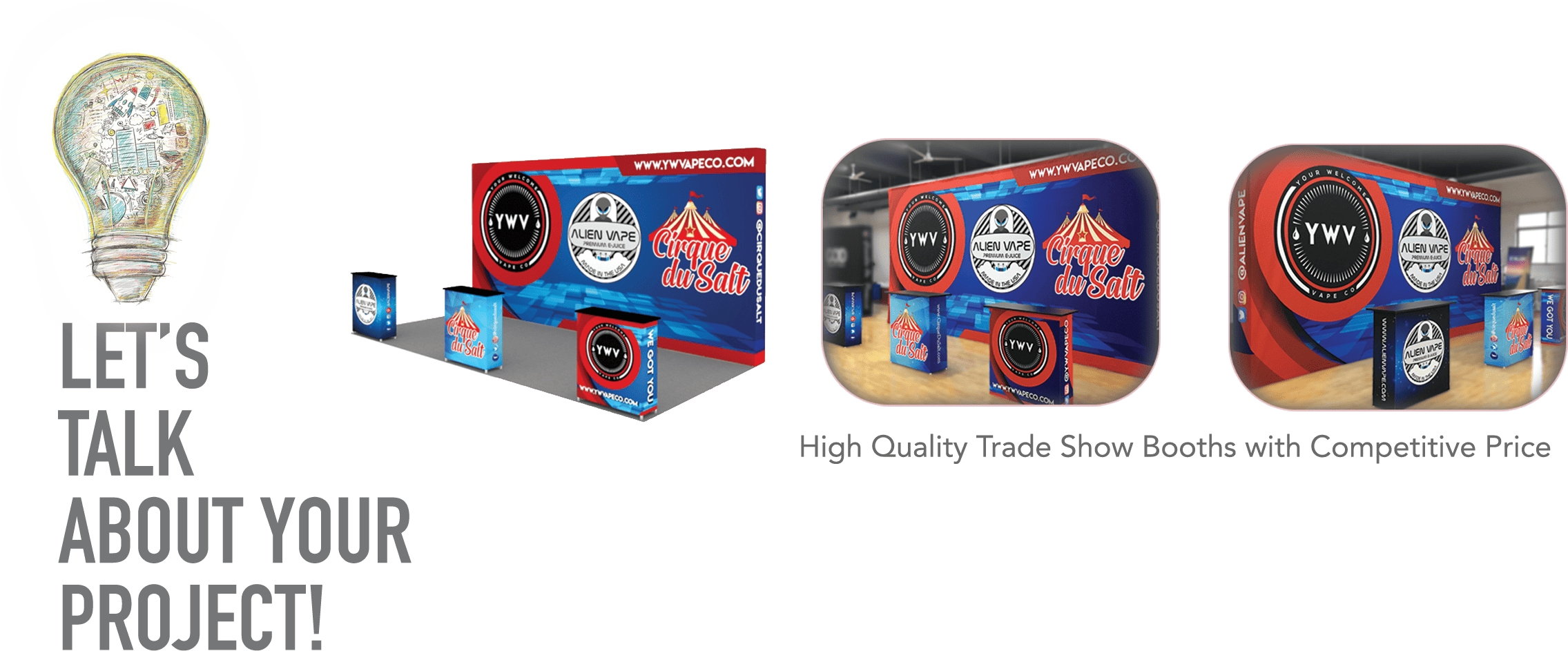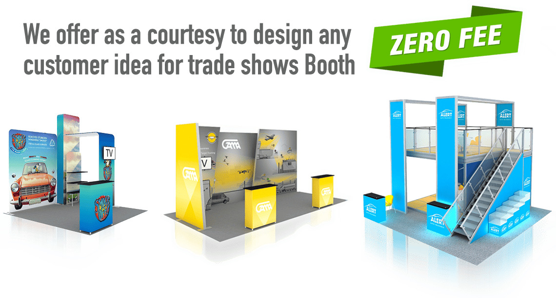 WE CAN DESIGN ANY IDEA FOR YOUR NEXT TRADE SHOW BOOTH WITH NO COST!